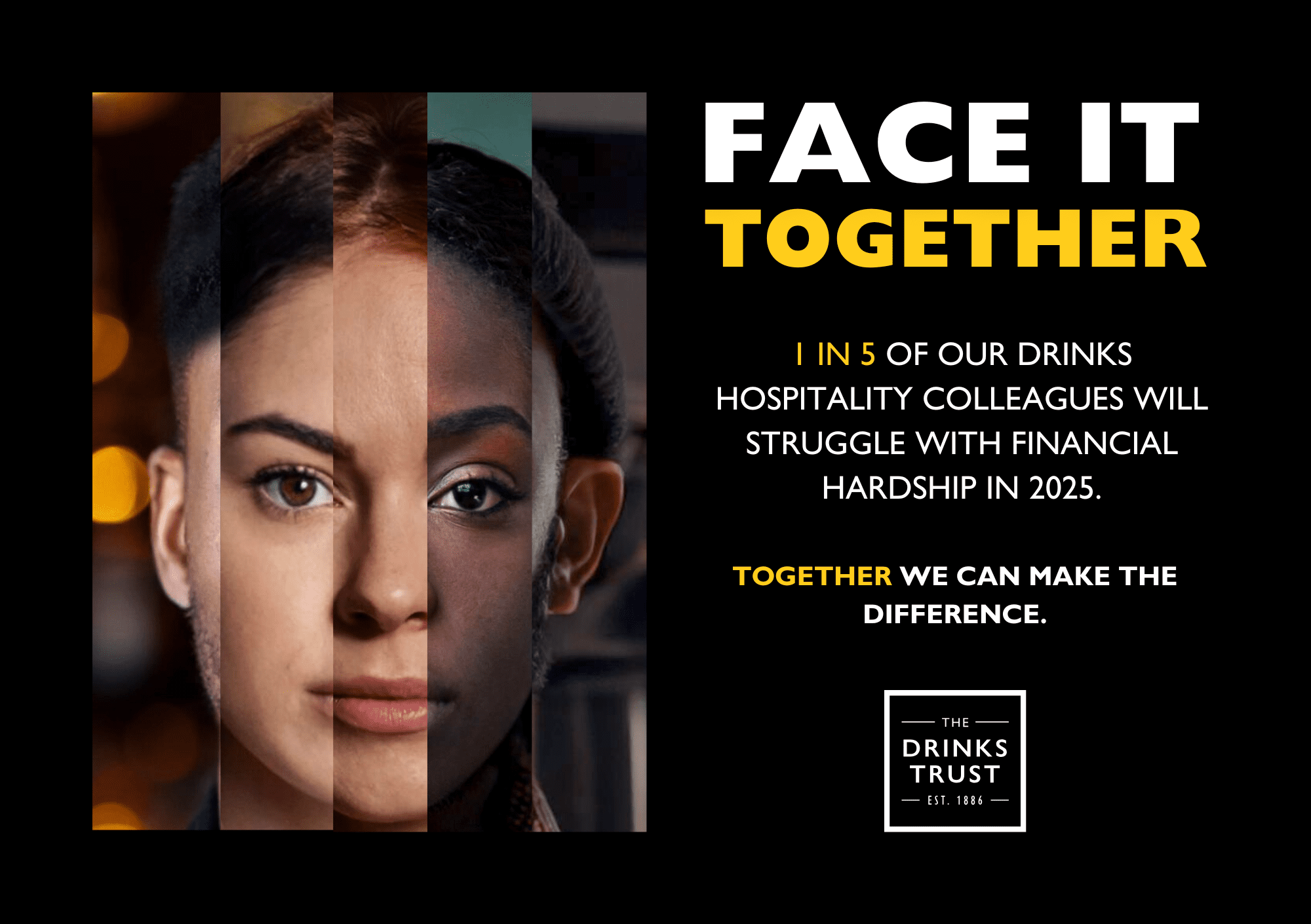 The Drinks Trust, the drinks hospitality industry charity, is proud to launch its most ambitious campaign yet, Face It Together, with the goal of raising £1,000,000 to continue helping those in need.